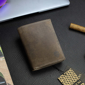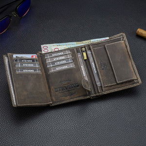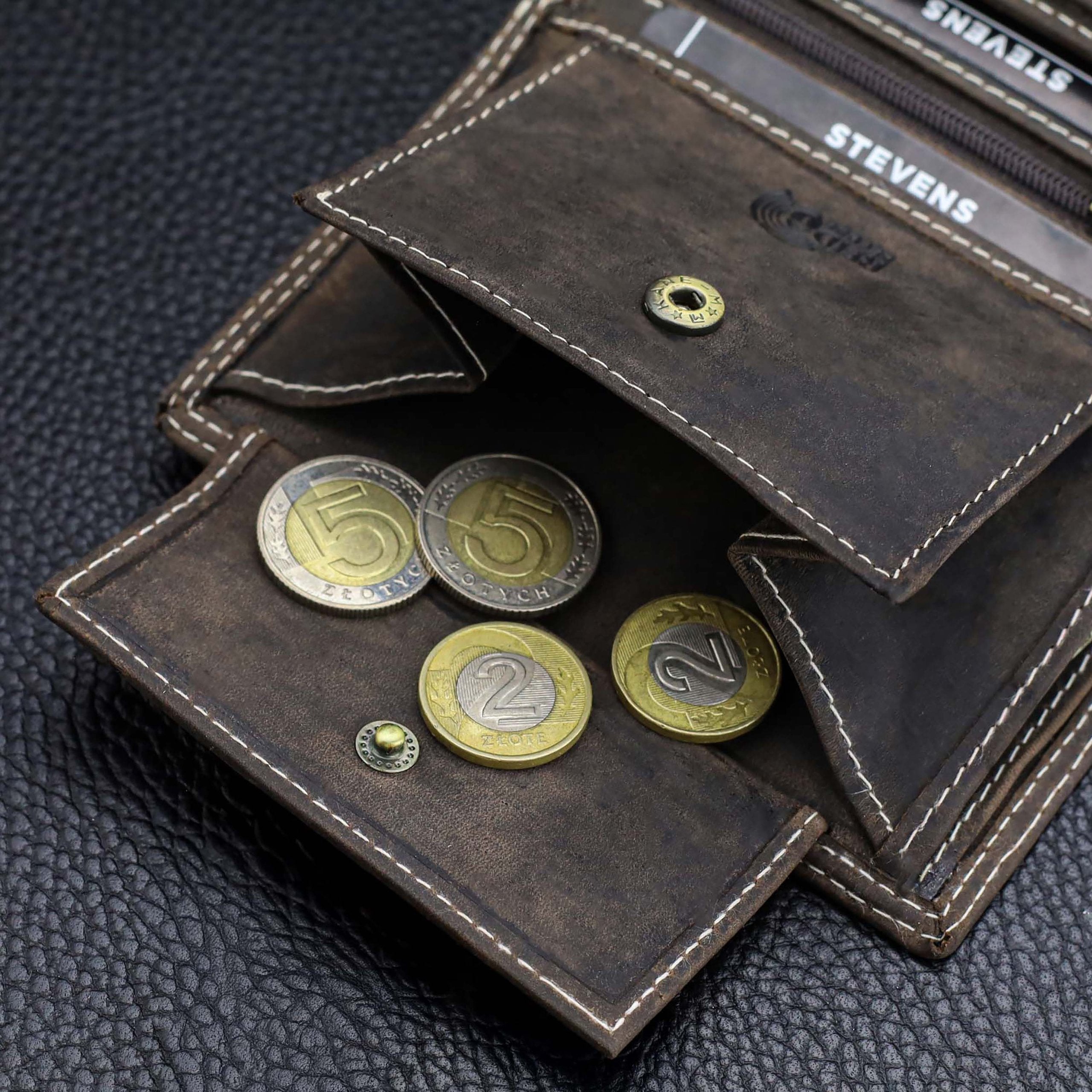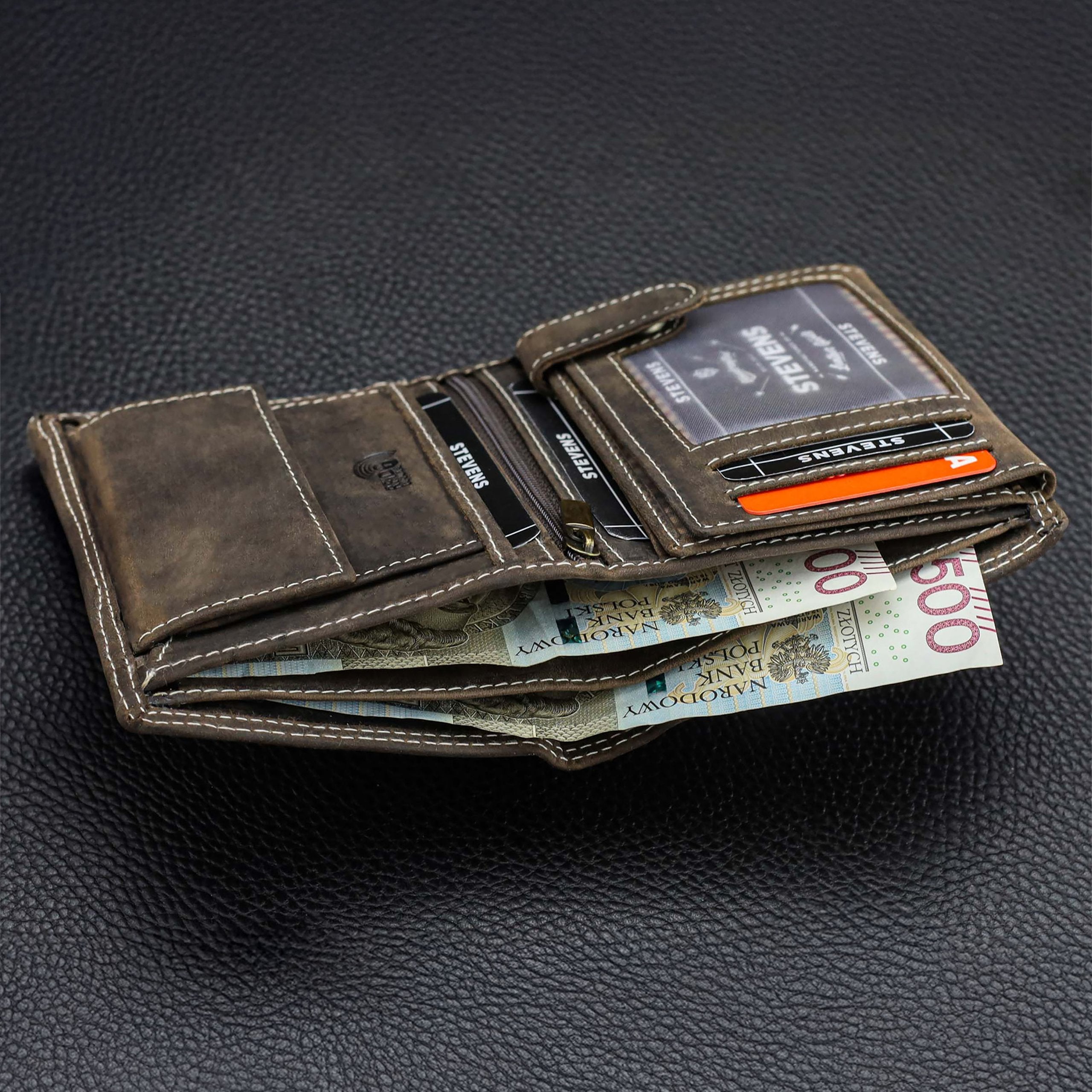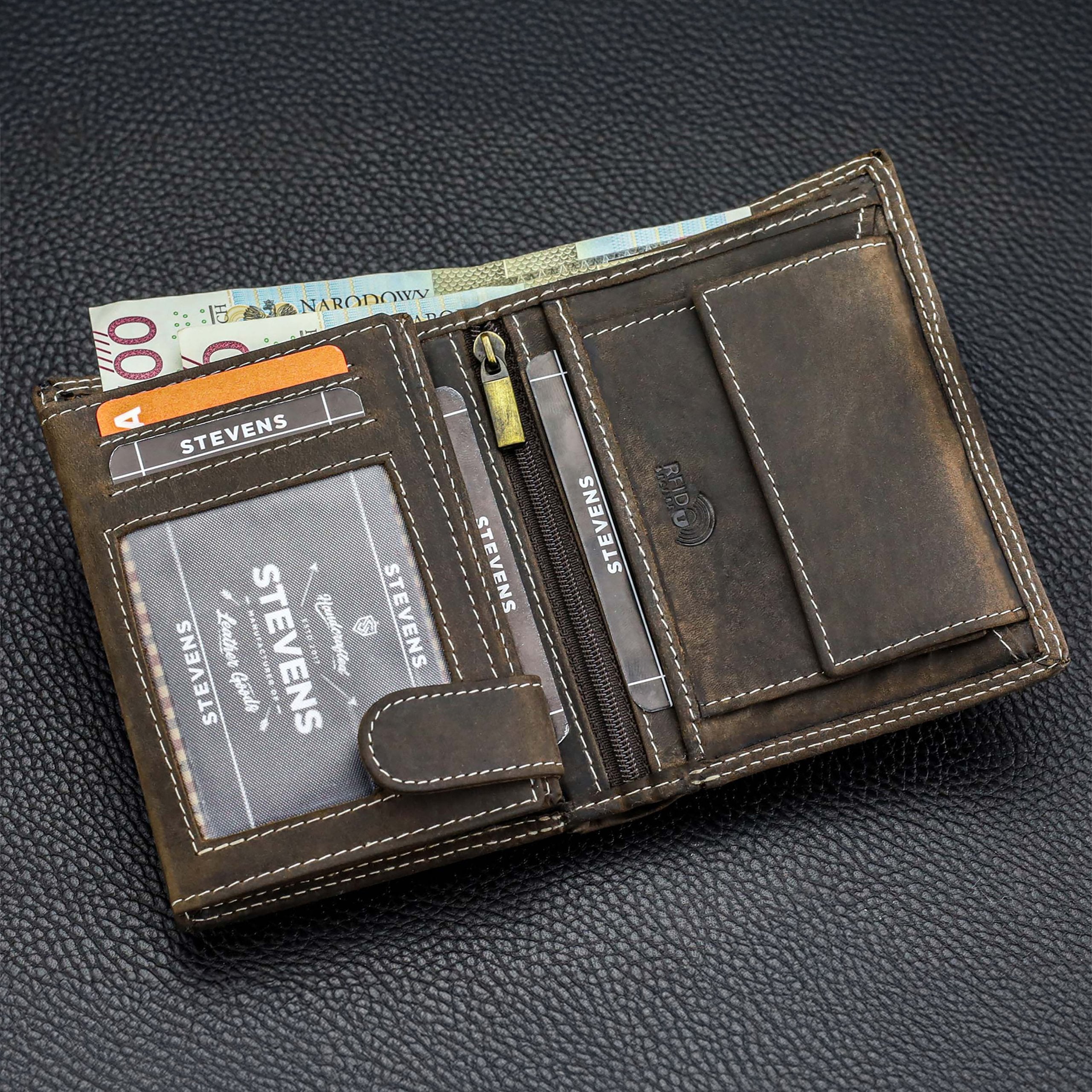 Vīriešu ādas maks STEVENS ar RFID aizsardzību, brūns