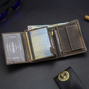 Vīriešu ādas maks STEVENS ar dāvanu maisiņu, melns, ar RFID aizsardzību Z04-326