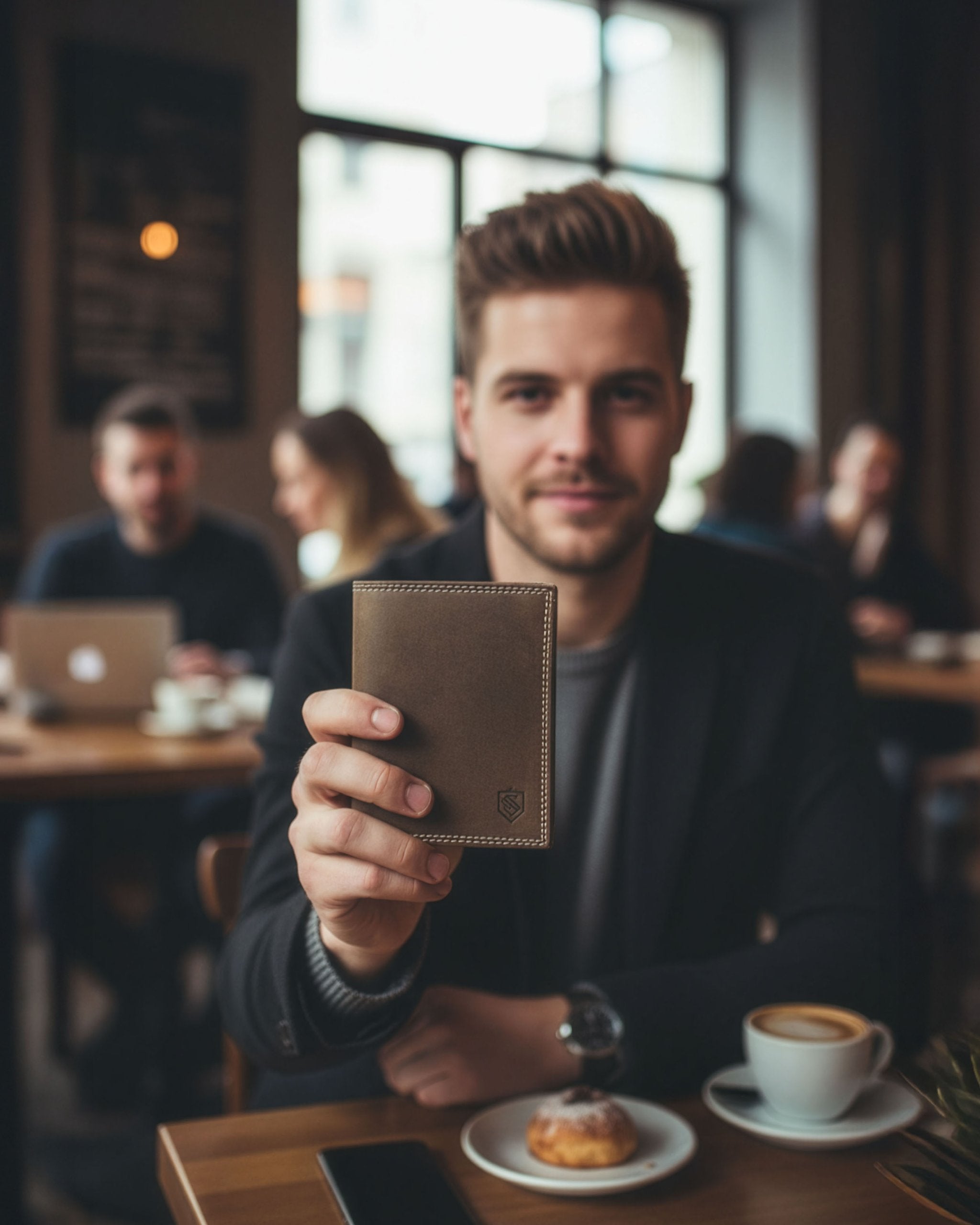 Elegants vīriešu maks, izgatavots no augstas kvalitātes dabīgas ādas, kas izceļas ar izturību un stilīgu izskatu. Integrētā RFID aizsardzība aizsargā bezkontakta kartes no neatļautas nolasīšanas.