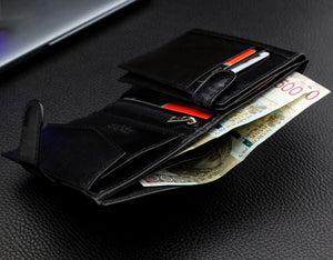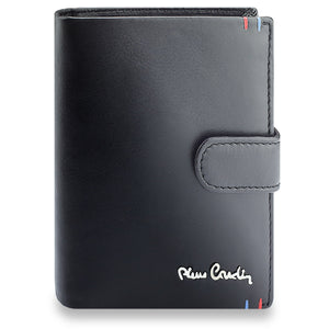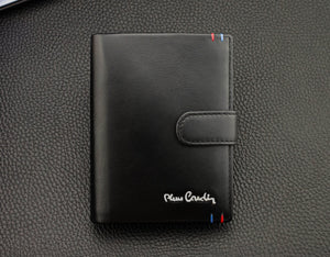 PIERRE CARDIN • Vīriešu ādas maks Q1 • Melns • Vertikāls • RFID • Vidēja izmēra • Ar ārējo sprādzi