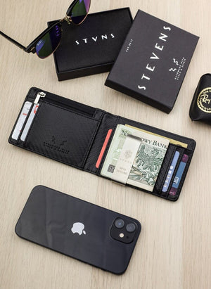 STEVENS® RFID vīriešu ādas maks ar ātru karšu piekļuvi un AirTag slotu