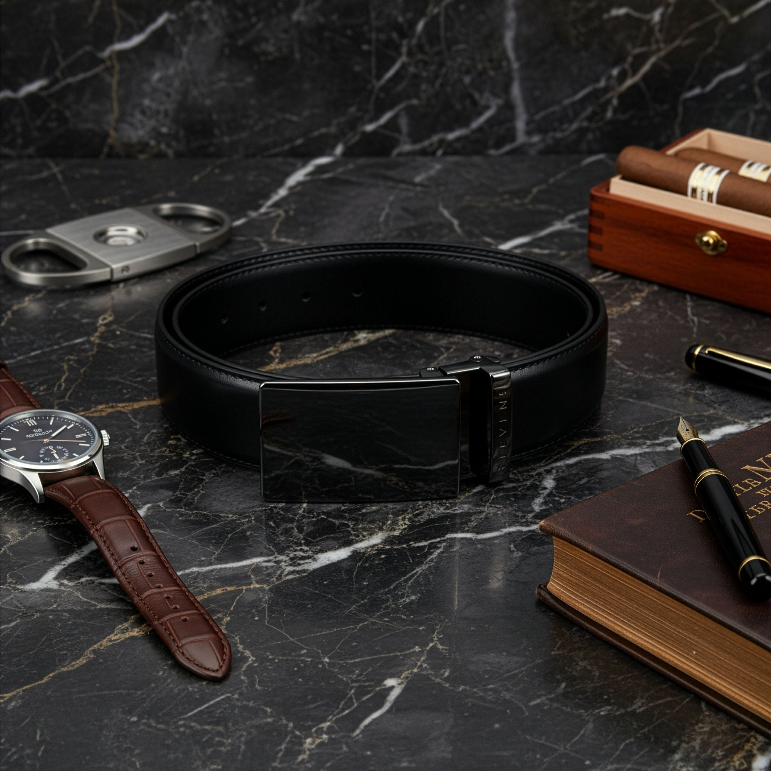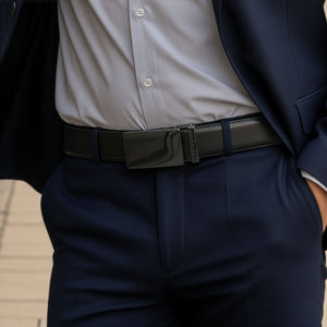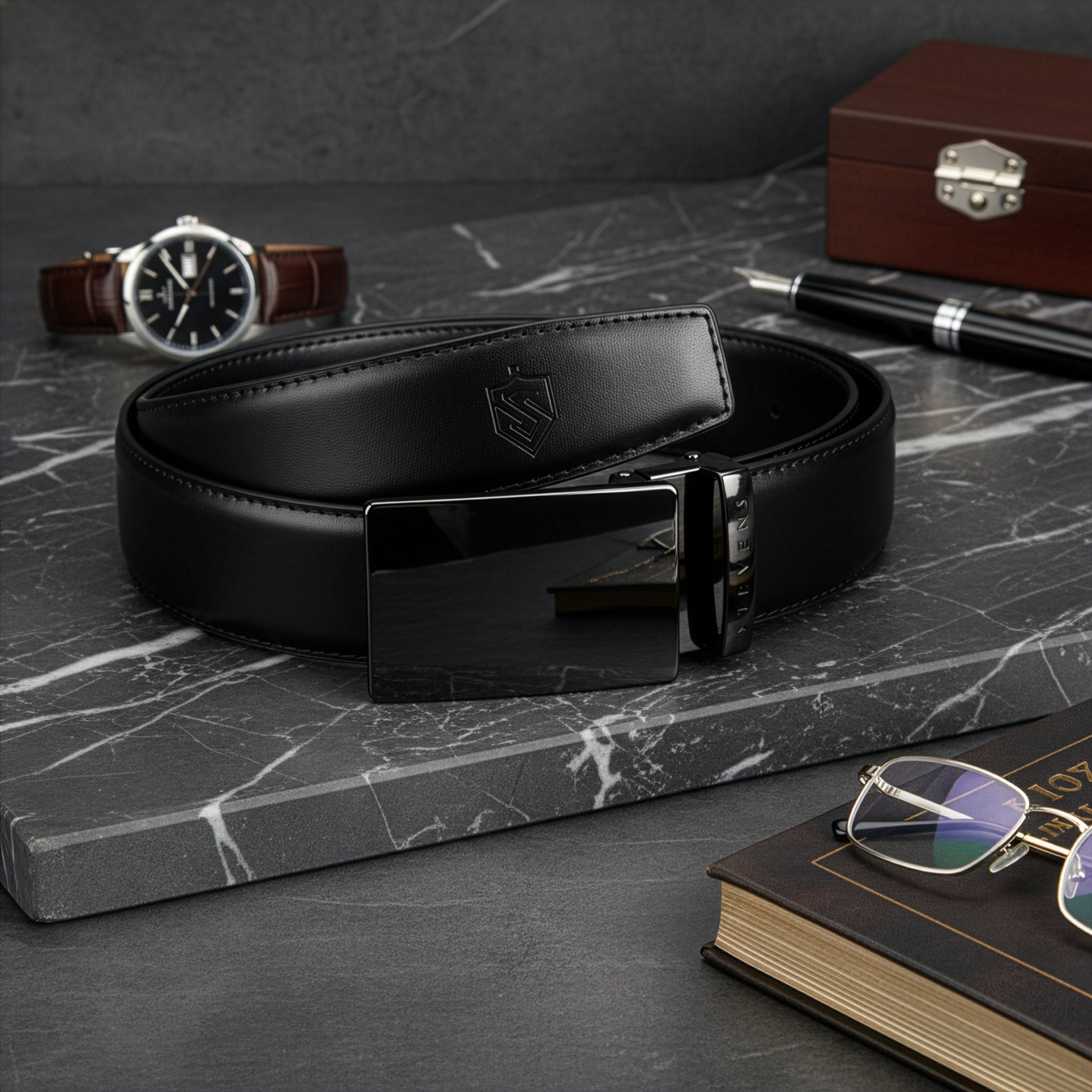 Vīriešu josta Stevens, melna, dabīgā āda, automātiska sprādze 2508