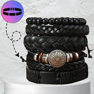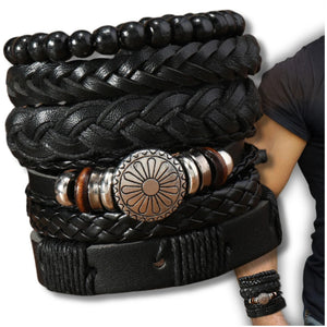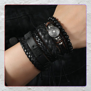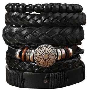 Vīriešu ādas rokassprādzes komplekts ar pērlītēm (jaukts)